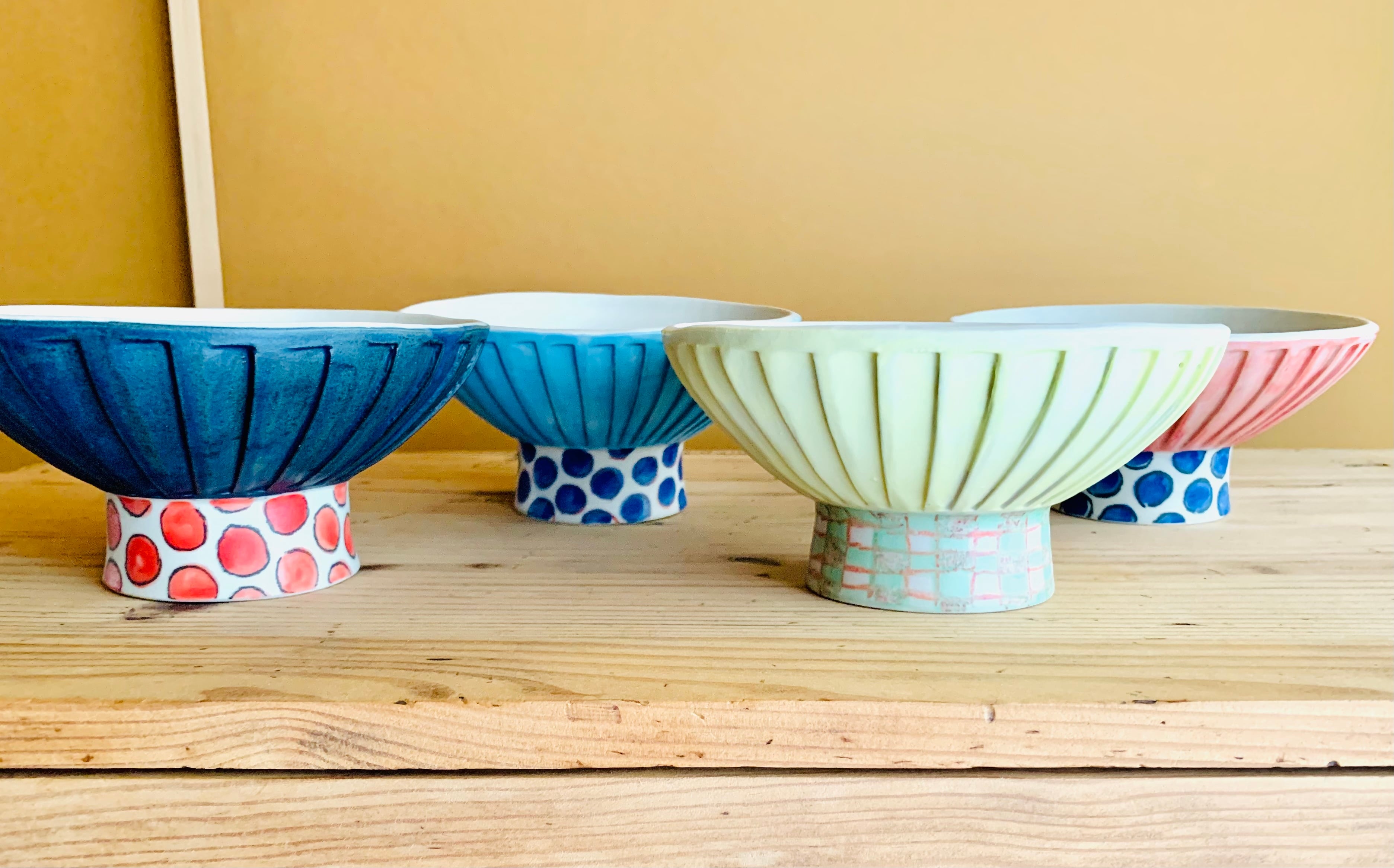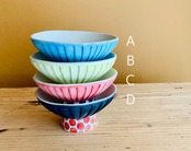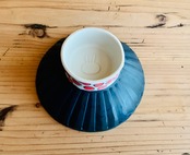 全体に鎬(シノギ)を施してありますので和のテイスト強めです。が、色絵付けが明るくポップなデザインなので重い雰囲気にはなりません♪