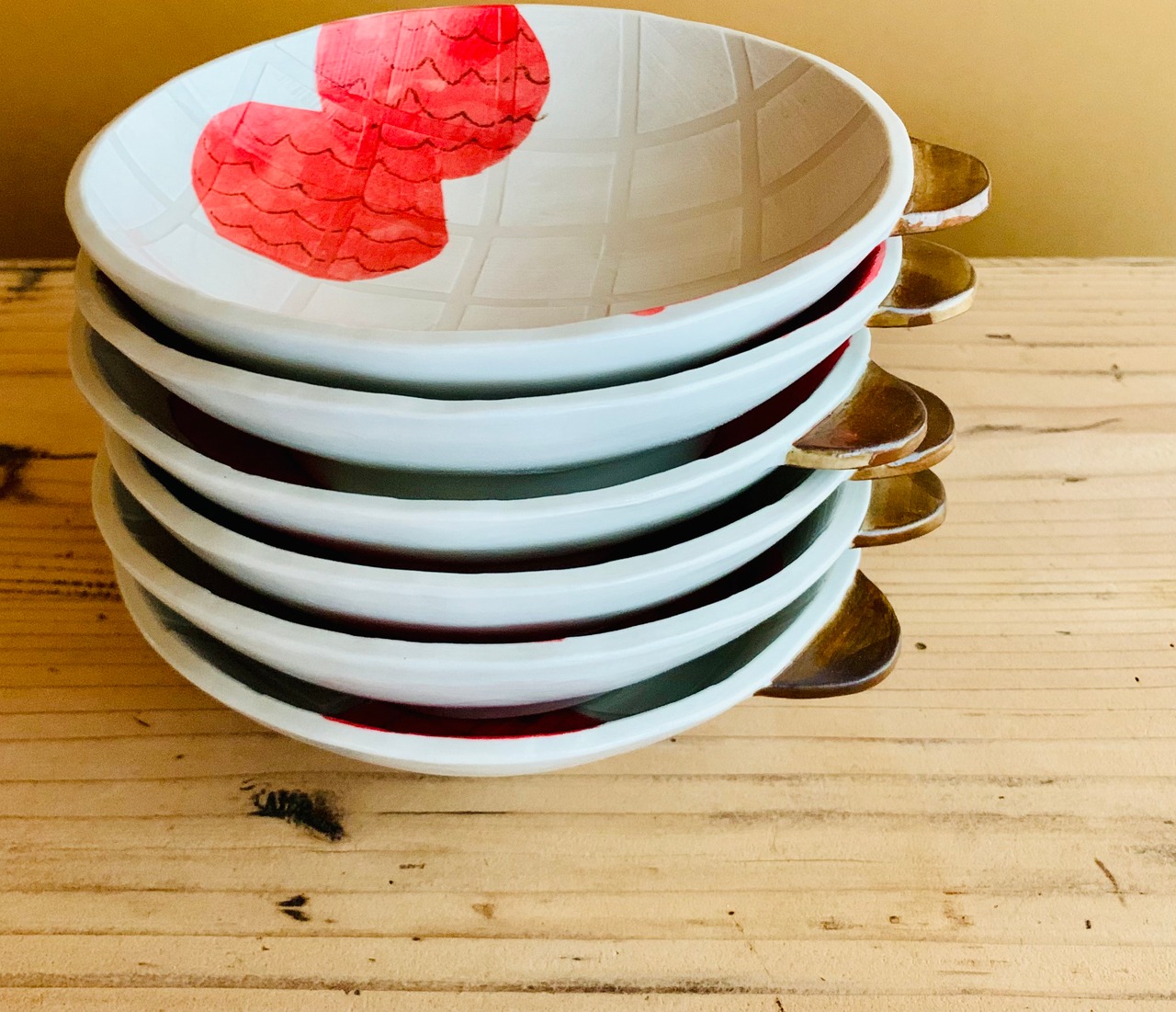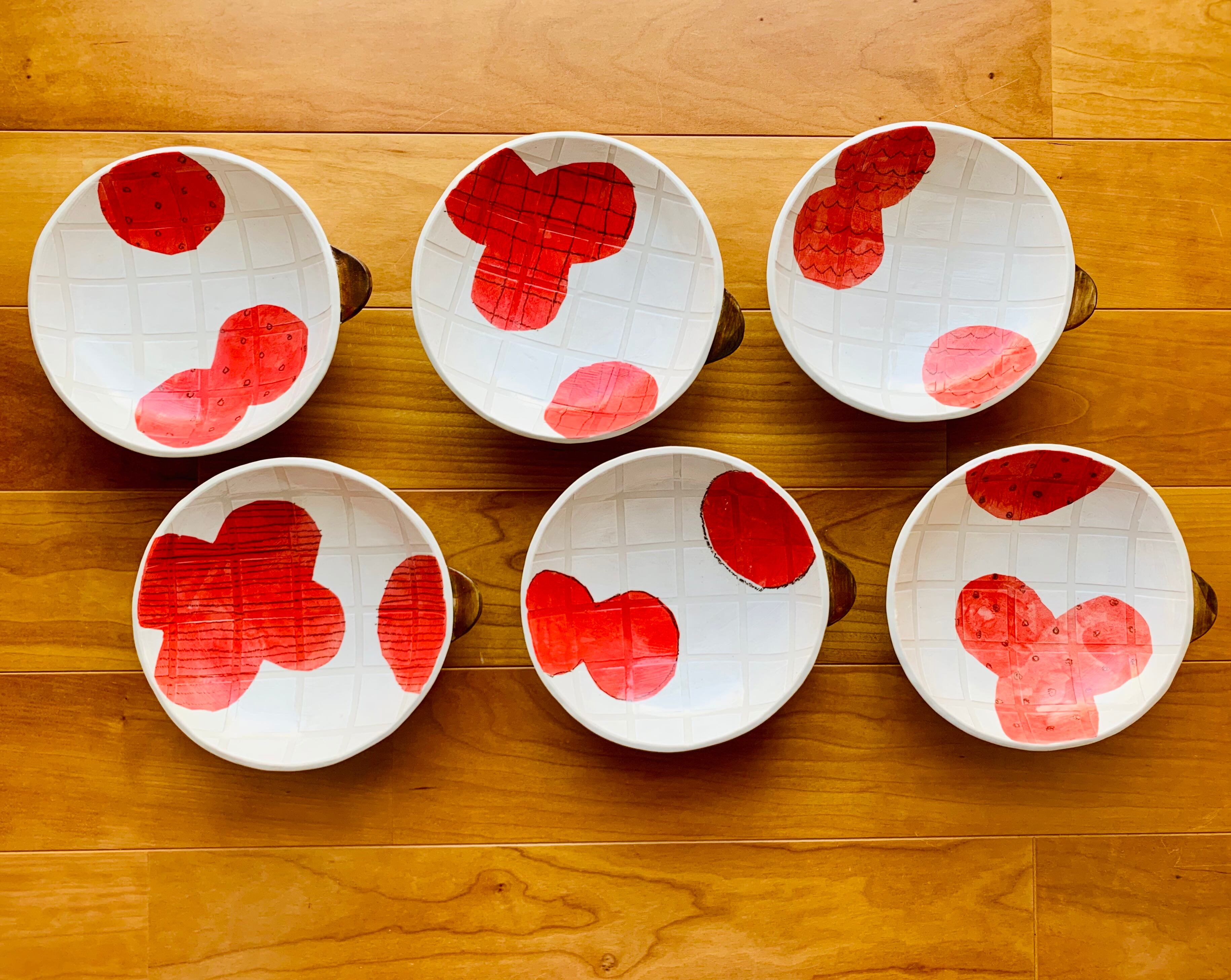 ちょこんとついた耳と赤色の中には茶色のワンポイントを。どちらもフリーハンドで描いてあり一点ものです☆